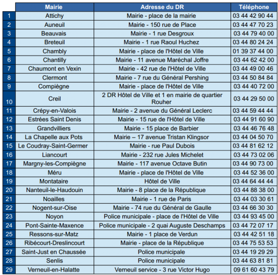 S'adresser Mairie équipée d'un dispositif de recueil, liste ci-jointe.